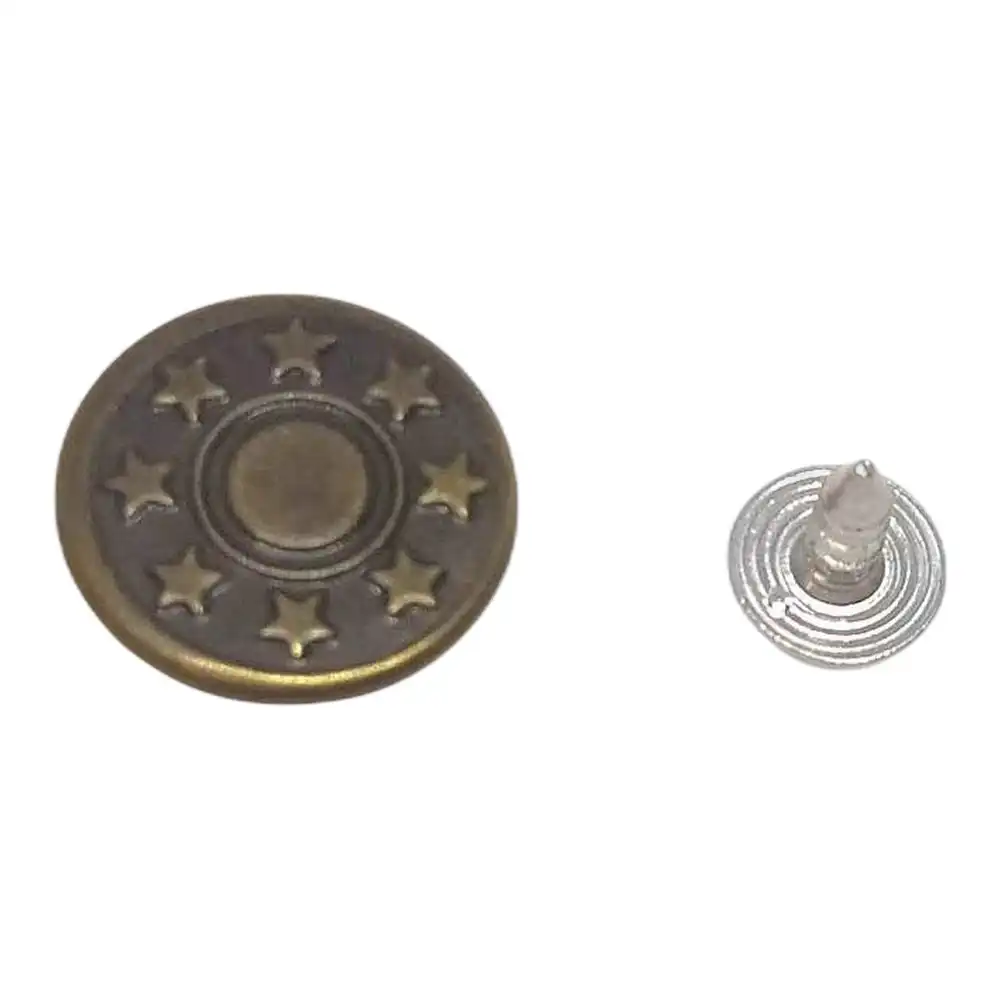 АЛЬТЕРНАТИВНЫЕ НАЗВАНИЯ: Джинсовые пуговицы 17 мм Антик Звезды, Металлическая пуговица 17 мм, Пуговицы Furtorg 17 мм, Пуговицы Звезды 17 мм