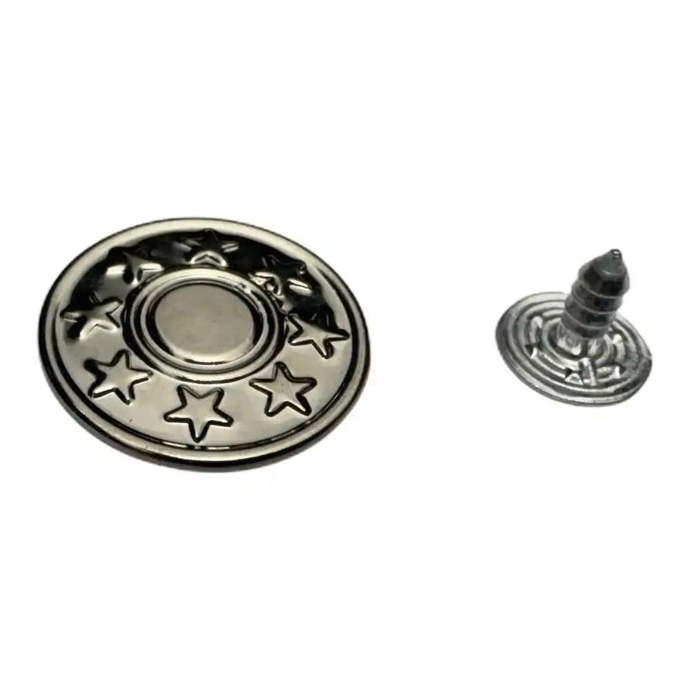 АЛЬТЕРНАТИВНЫЕ НАЗВАНИЯ: Джинсовые пуговицы 17 мм, Никель Звезды (2), Пуговицы Furtorg, Металлические пуговицы никелевые, Пуговицы 100 шт.