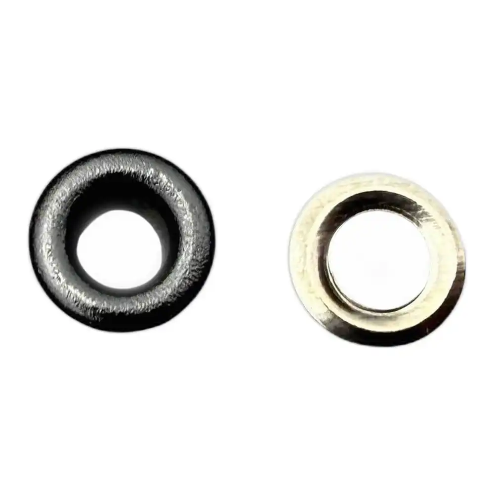 АЛЬТЕРНАТИВНЫЕ НАЗВАНИЯ: Люверс 8 мм Черный оксид, Металлический люверс 8 мм, Черный люверс 8 мм от Furtorg, Люверс черного цвета с внутренним диаметром 8 мм.