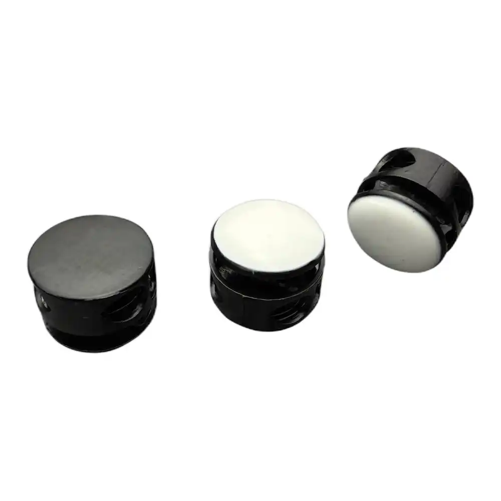 АЛЬТЕРНАТИВНЫЕ НАЗВАНИЯ: Металлический фиксатор для шнурков Цвет — Черный с белым, Стопор для шнурков Черный с белым, Фиксатор для шнурков Furtorg Черный с белым.