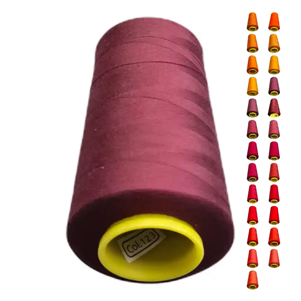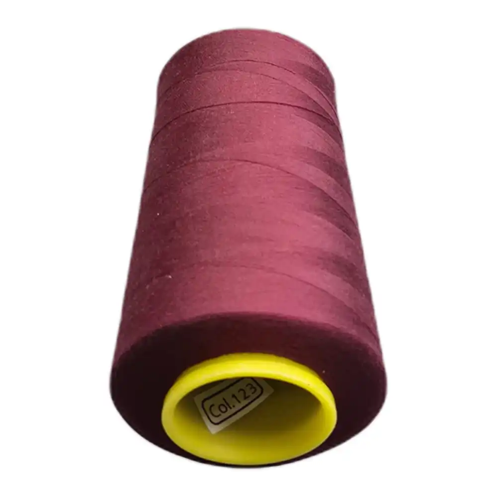 Нитки KIWI в цвете 123 представляют собой глубокий бордовый оттенок, который можно описать как красное вино, темно-красный и малиновый. Этот цвет близок к Pantone 19-1532 и Pantone 18-1651. Нити изготовлены из полиэстера, отличаясь высокой прочностью и малой растяжимостью, что делает их подходящими для использования как в бытовых, так и в профессиональных швейных машинах.