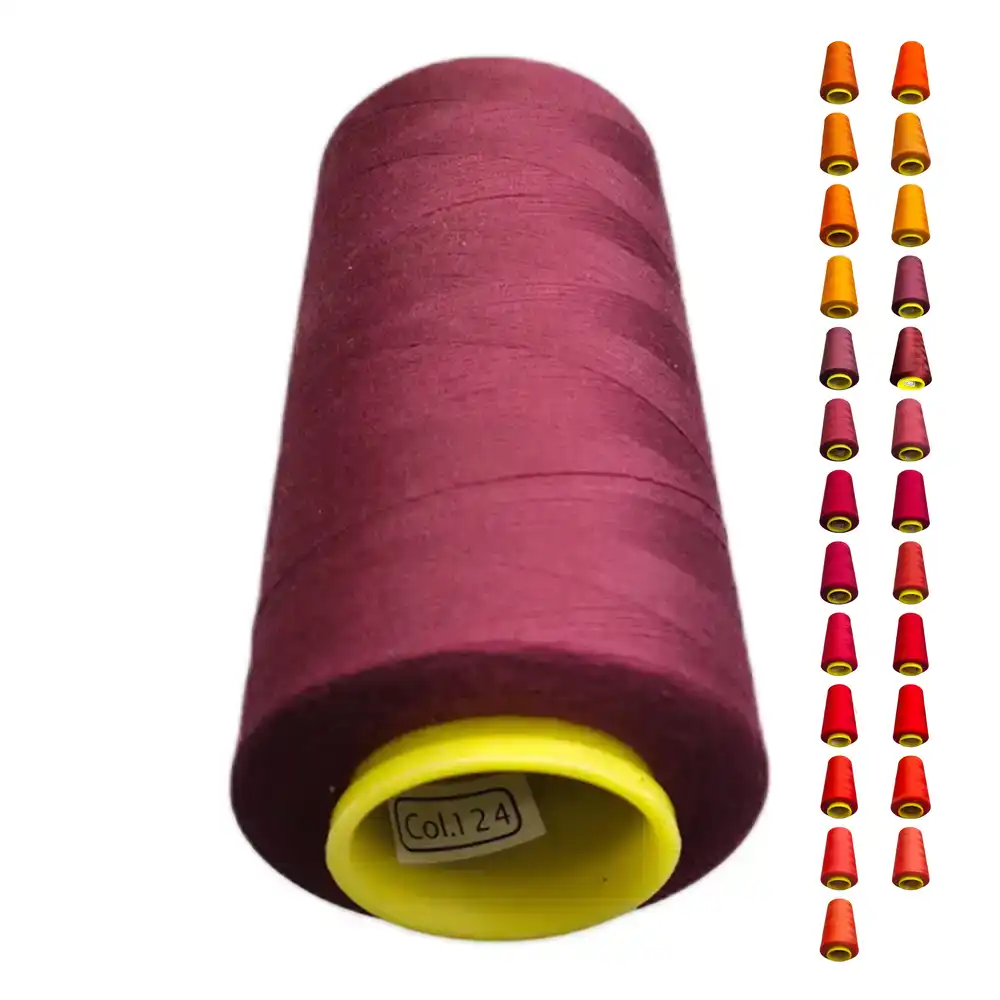Цвет ниток KIWI 124 представляет собой глубокий бордовый оттенок, отдалённо напоминающий красное вино и темно-бордовый. Этот цвет можно сопоставить с Pantone 19-1536 и Pantone 18-165. Нити изготовлены из полиэстера, отличаются высокой прочностью и малой растяжимостью, что делает их подходящими как для бытовых, так и для профессиональных машин.