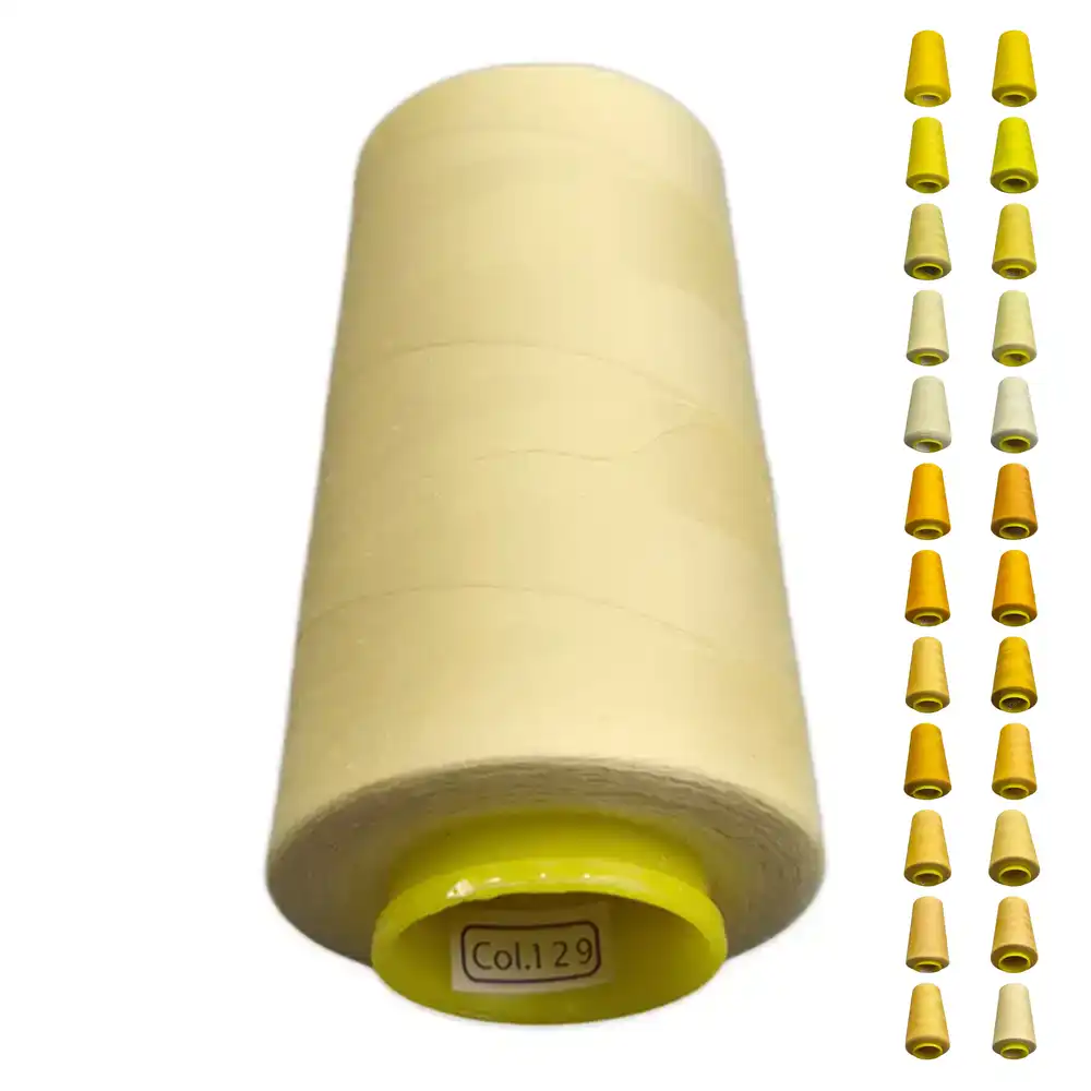 Нитки KIWI цвета 129 представляют собой светло-желтый оттенок, близкий к песочному и бежевому. По ориентировочным Pantone, этот цвет соответствует Pantone 600 и Pantone 7401. Изготавливаемые из полиэстера, эти нити обладают высокой прочностью и малой растяжимостью, что делает их пригодными как для бытовых, так и для профессиональных швейных машин.