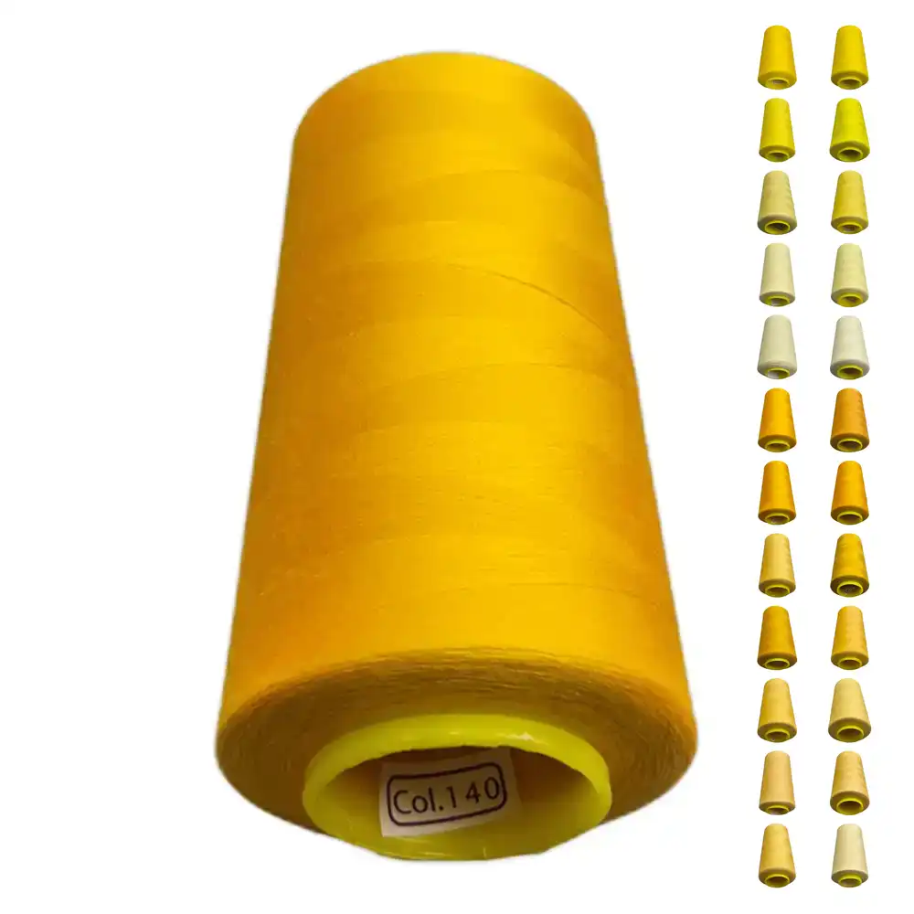 Нитки KIWI цвета 140 имеют яркий и насыщенный солнечный желтый оттенок, который можно охарактеризовать как лимонный или золотистый. Ориентировочные цвета Pantone, соответствующие этому оттенку, — PANTONE 12-0716 и PANTONE 13-0850. Изготавливаются из полиэстера, эти нитки отличаются высокой прочностью и малой растяжимостью, что делает их пригодными для использования как в бытовых, так и в профессиональных швейных машинах.