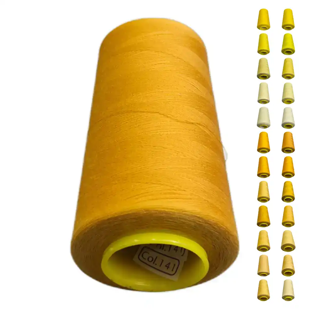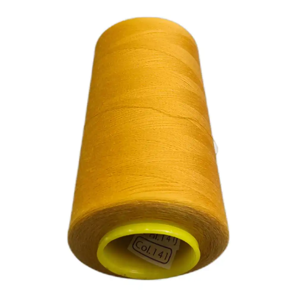 Нитки KIWI цвета 141 имеют яркий золотистый оттенок, который можно охарактеризовать как солнечный или лимонный. Ориентиры по Pantone для этого цвета — PANTONE 123 C и PANTONE 7549 C. Изготовленные из полиэстера, они обладают высокой прочностью и малой растяжимостью, что делает их подходящими для использования как в бытовых, так и в профессиональных швейных машинах.
