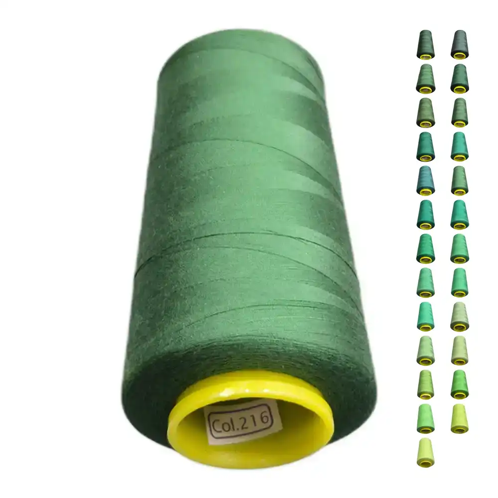 Нитки KIWI цвета 216 обладают насыщенным травяным зеленым оттенком, который близок к свежей листве и зеленой траве. Этот цвет можно сопоставить с Pantone 347 C и Pantone 355 C. Изготовленные из полиэстера, нитки отличаются высокой прочностью и малой растяжимостью, что делает их подходящими для использования как в бытовых, так и в профессиональных швейных машинах.