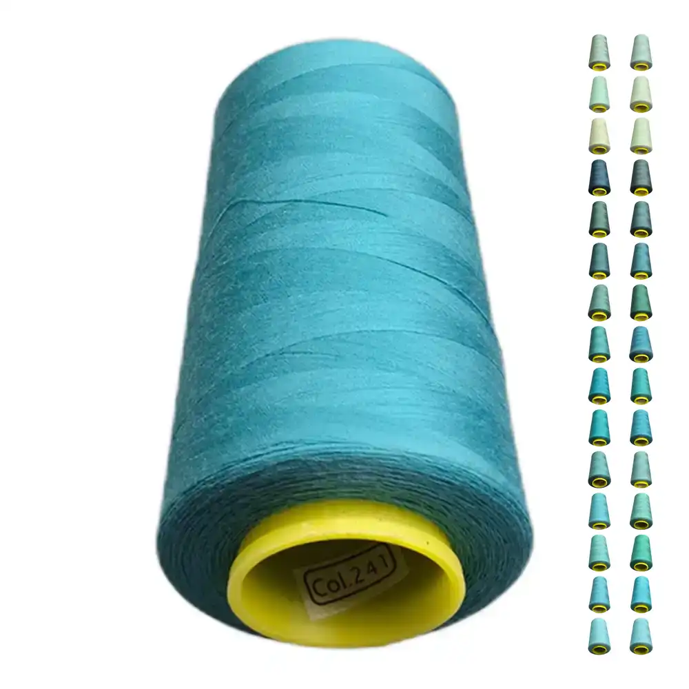 Нитки KIWI цвета 241 представляют собой яркий и насыщенный бирюзовый оттенок, который можно охарактеризовать как морская волна или циан. Этот цвет близок к Pantone 16-4532 и Pantone 15-5519, что подчеркивает его свежесть и привлекательность. Изготовленные из полиэстера, нитки обладают высокой прочностью и малой растяжимостью, что делает их идеальными для использования как в бытовых, так и в профессиональных швейных машинах.