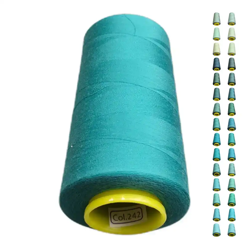 Нитки KIWI в цвете 242 обладают ярким бирюзовым оттенком, который можно описать как насыщенный, свежий и живой. Они имеют ориентировочные цвета Pantone 16-4535 и Pantone 15-5519. Эти полиэстеровые нити отличаются высокой прочностью, малой растяжимостью и отлично подходят для использования как в бытовых, так и в профессиональных швейных машинах.