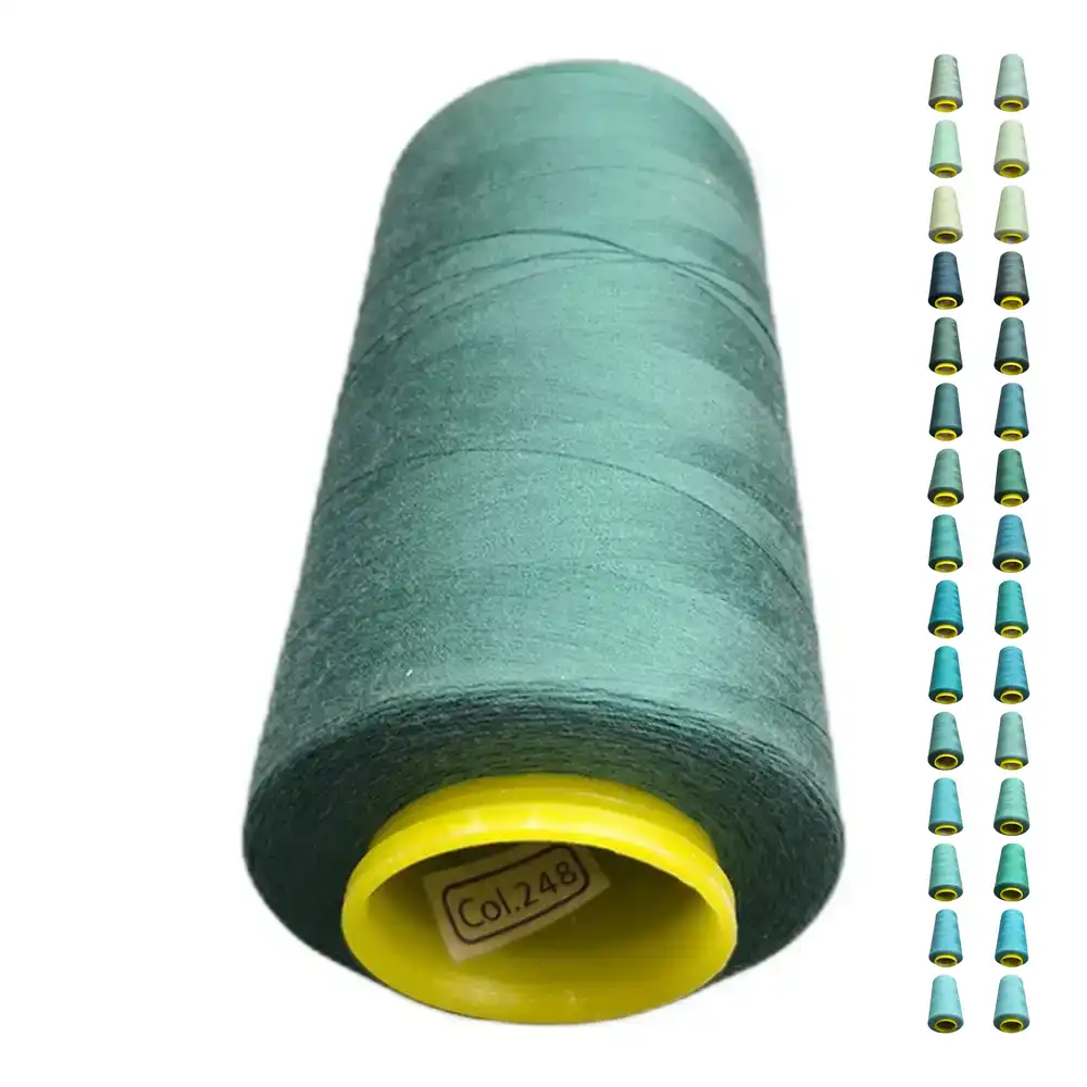 Нитки KIWI в цвете 248 имеют насыщенный бирюзовый оттенок с легкими зелеными нотками, напоминающими морскую воду. Этот цвет можно сопоставить с Pantone 321 C и Pantone 7460. Изготовленные из полиэстера, нитки обладают высокой прочностью и малой растяжимостью, что делает их подходящими для использования в бытовых и профессиональных швейных машинах.