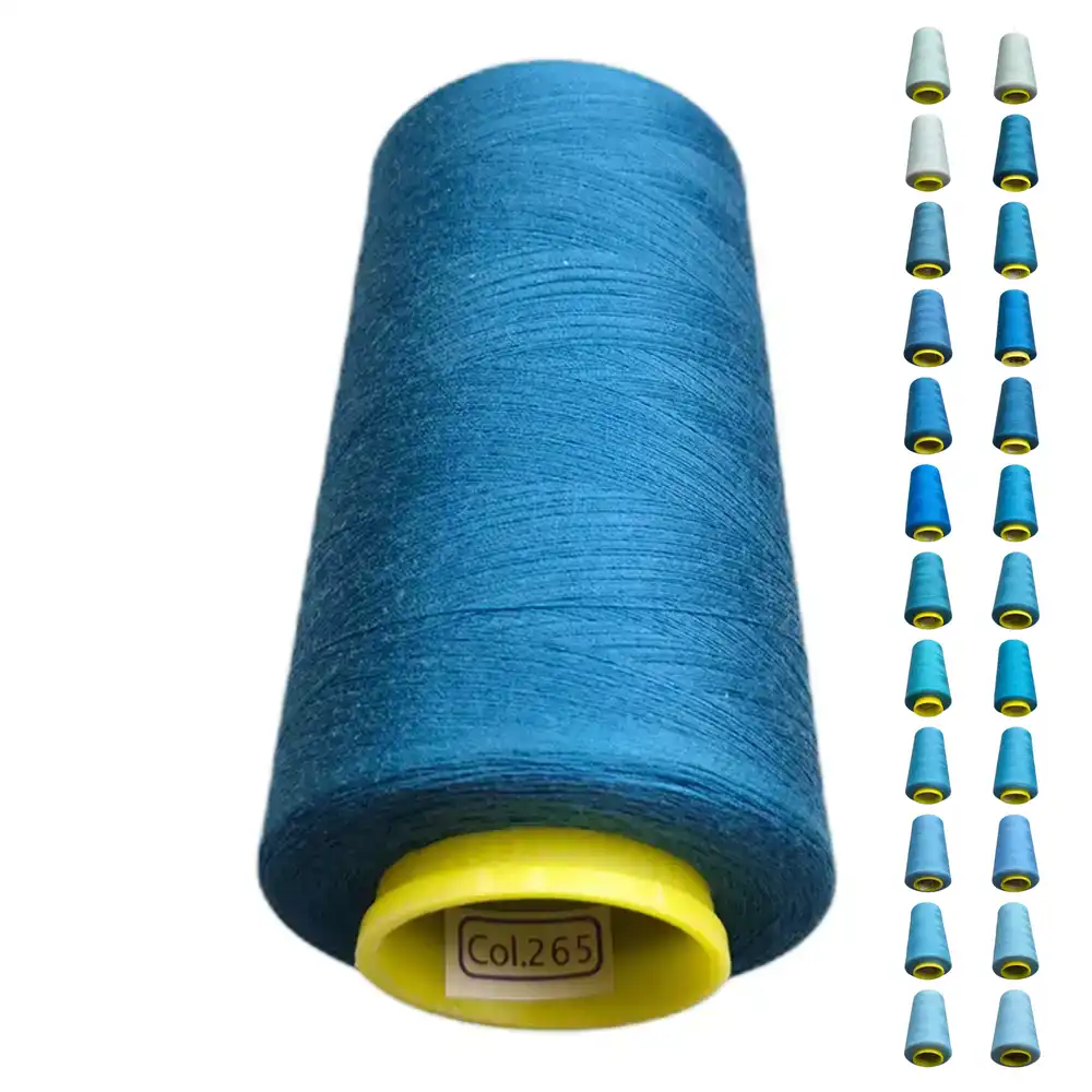 Нитки KIWI цвета 265 имеют яркий и насыщенный синий оттенок, близкий к бирюзовому и тёмно-голубому. Эти нити выполнены из полиэстера, что обеспечивает им высокую прочность и малую растяжимость. Они подходят для использования как в бытовых, так и в профессиональных швейных машинах.