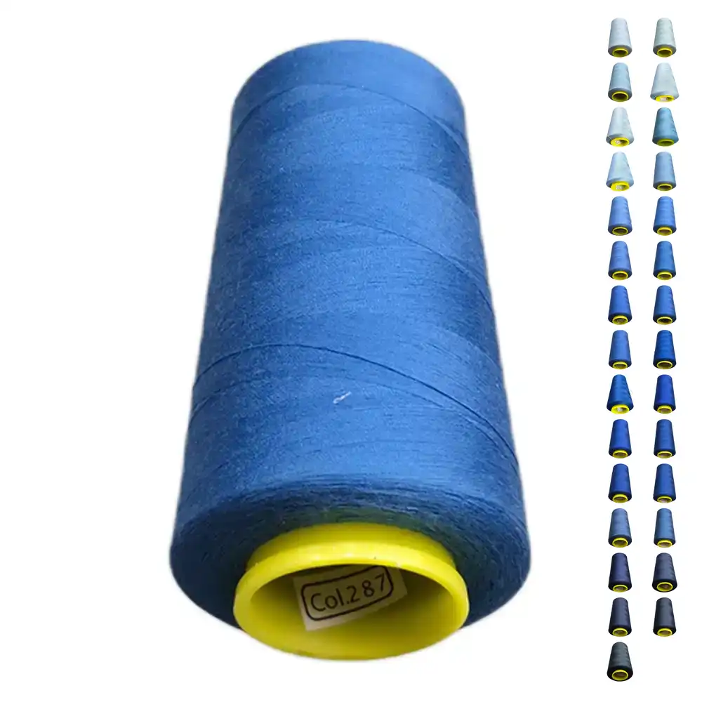 Нитки KIWI цвета 287 представляют собой яркий и насыщенный оттенок синего, который можно описать как глубокий синий, кобальтовый или ярко-синий. Они изготовлены из полиэстера, что обеспечивает высокую прочность и малую растяжимость, что делает их подходящими для использования как в бытовых, так и в профессиональных швейных машинах.