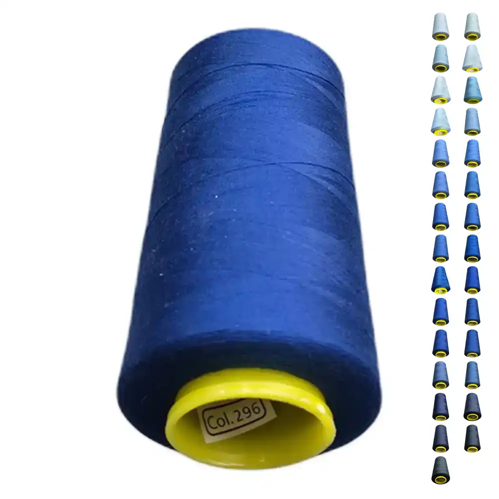 Нитки KIWI цвет 296 имеют яркий и насыщенный оттенок синего, который можно охарактеризовать как глубокий синий или королевский синий. Этот цвет близок к Pantone 286 C и Pantone 7687 C. Изготавливаемые из полиэстера, они обладают высокой прочностью и малой растяжимостью, что делает их идеальными для использования в бытовых и профессиональных швейных машинах.