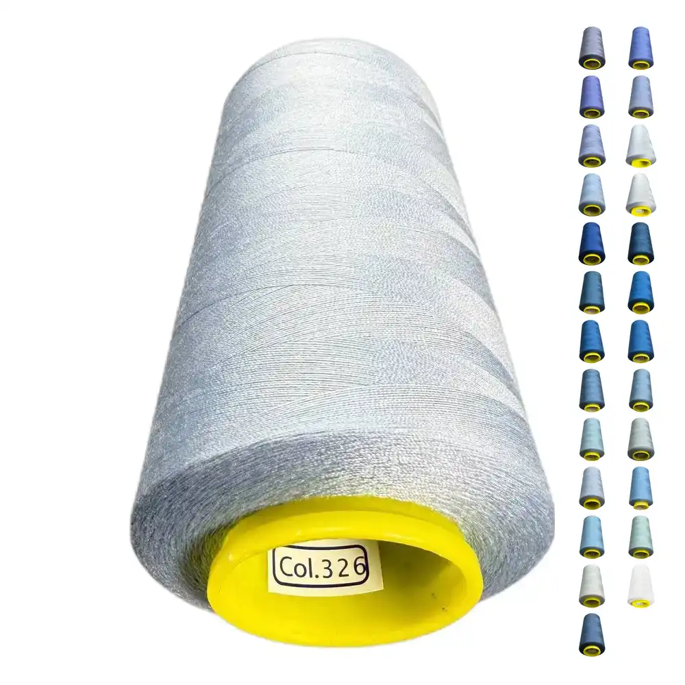Нитки KIWI в цвете 326 имеют небесно-голубой оттенок, который можно описать как ледяной или светло-голубой. Этот цвет близок к Pantone 290 и Pantone 7541, добавляя легкий металлический оттенок. Изготавливаются из полиэстера, что обеспечивает высокую прочность и малую растяжимость, а также делают их подходящими для использования как в бытовых, так и в профессиональных швейных машинах.