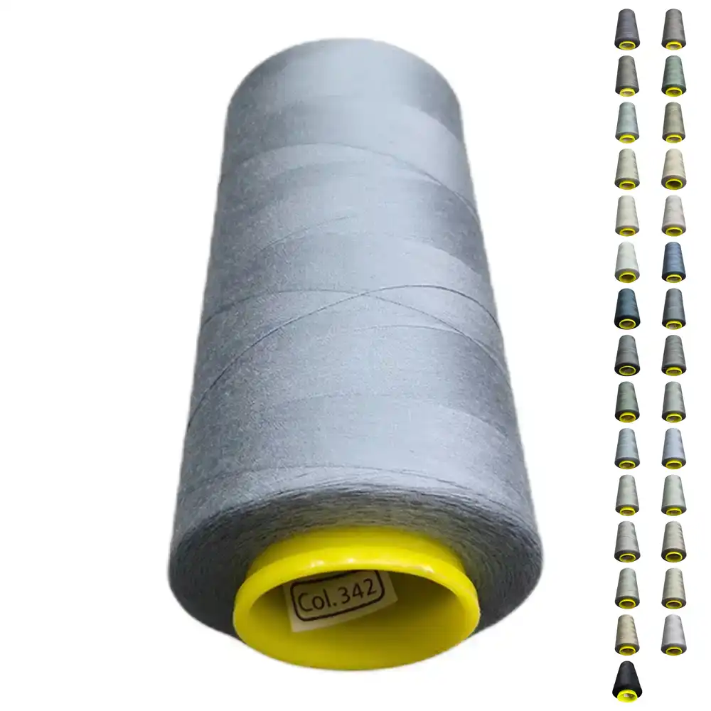 Нитки KIWI цвета 342 имеют элегантный серый оттенок с легким металлическим блеском. Этот цвет можно охарактеризовать как серебристый и стальной, что делает его универсальным выбором для различных проектов. Изготовленные из полиэстера, они обладают высокой прочностью, малой растяжимостью и подходят как для бытовых, так и для профессиональных швейных машин.