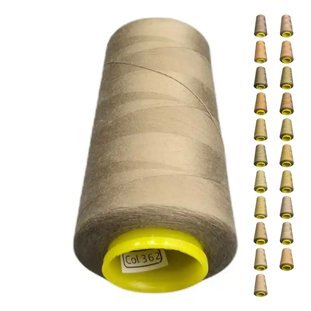 Нитки KIWI в цвете 362 имеют приятный бежевый оттенок, который можно описать как светло-коричневый и песочный. Этот цвет близок к Pantone 7500 и Pantone 7501. Изготавливаются из полиэстера, эти нити отличаются высокой прочностью и малой растяжимостью, что делает их пригодными для использования в бытовых и профессиональных швейных машинах.