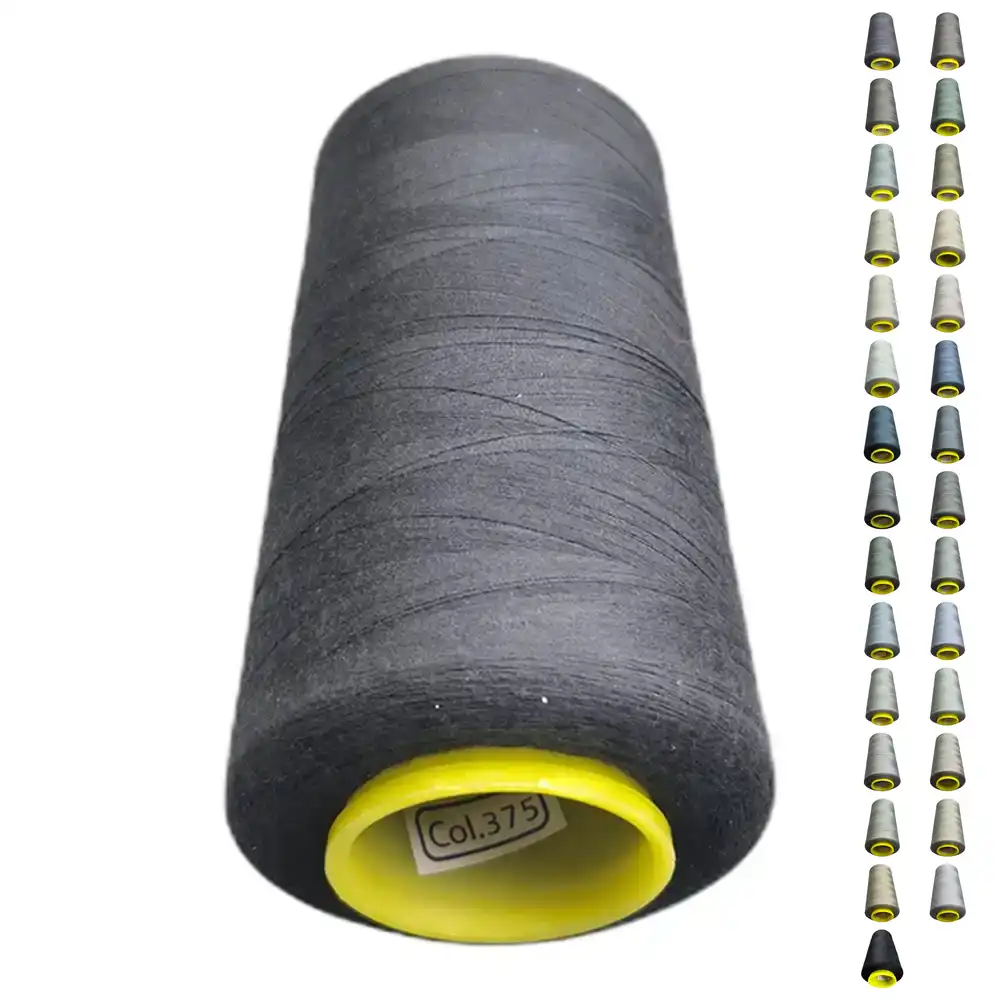 Нитки KIWI в цвете 375 представляют собой насыщенный темно-серый оттенок, который можно охарактеризовать как угольный, графитовый или асфальтовый. Они изготовлены из полиэстера, обладают высокой прочностью и малой растяжимостью, что делает их подходящими для использования как в бытовых, так и в профессиональных швейных машинах.