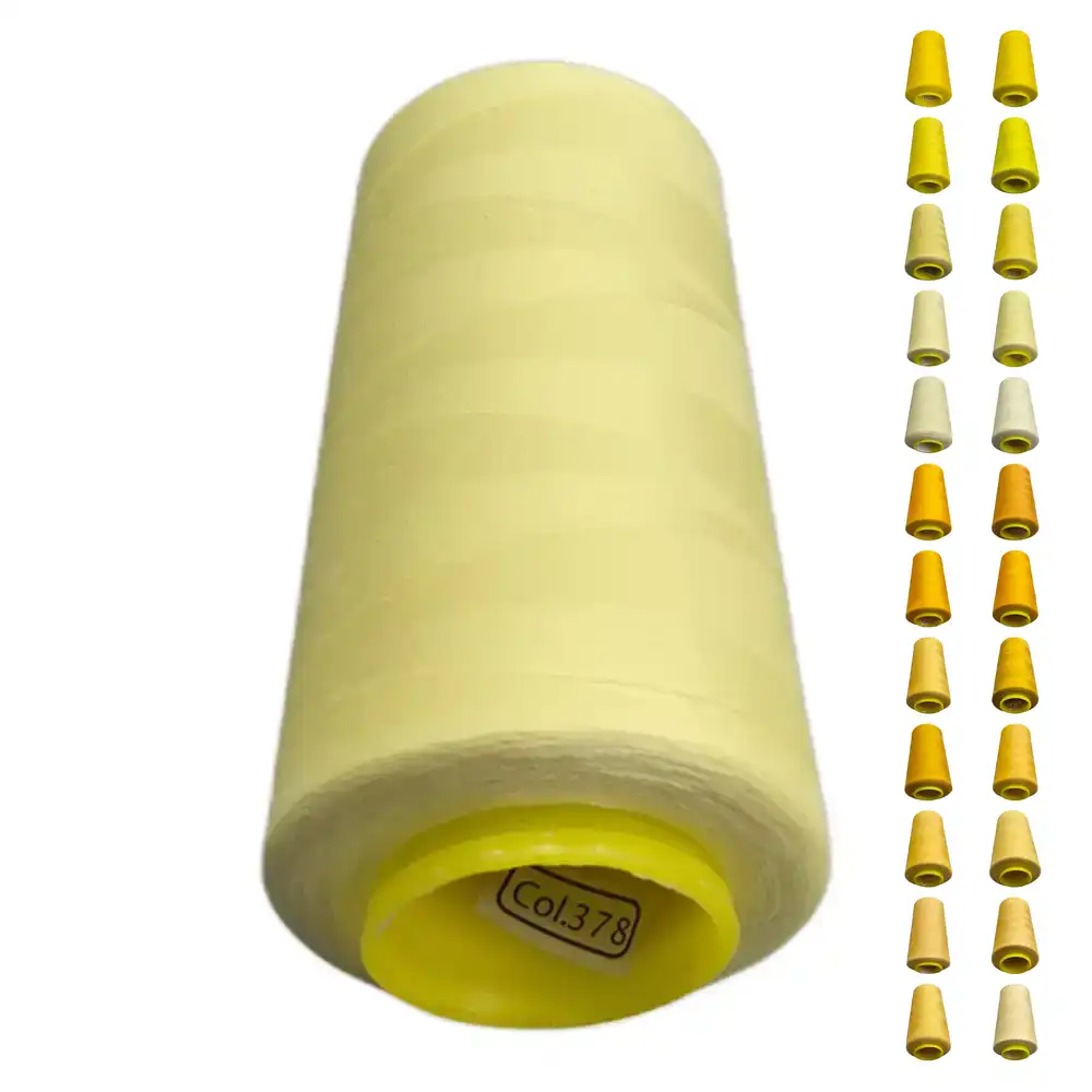 Нитки KIWI цвета 378 имеют светло-жёлтый оттенок, который можно охарактеризовать как пастельный жёлтый или бледно-жёлтый. Этот цвет близок к Pantone 600 и Pantone 120, что делает его идеальным выбором для весенних и летних коллекций. Изготавливаются из полиэстера, эти нити отличаются высокой прочностью и малой растяжимостью, что позволяет использовать их как в бытовых, так и в профессиональных швейных машинах.