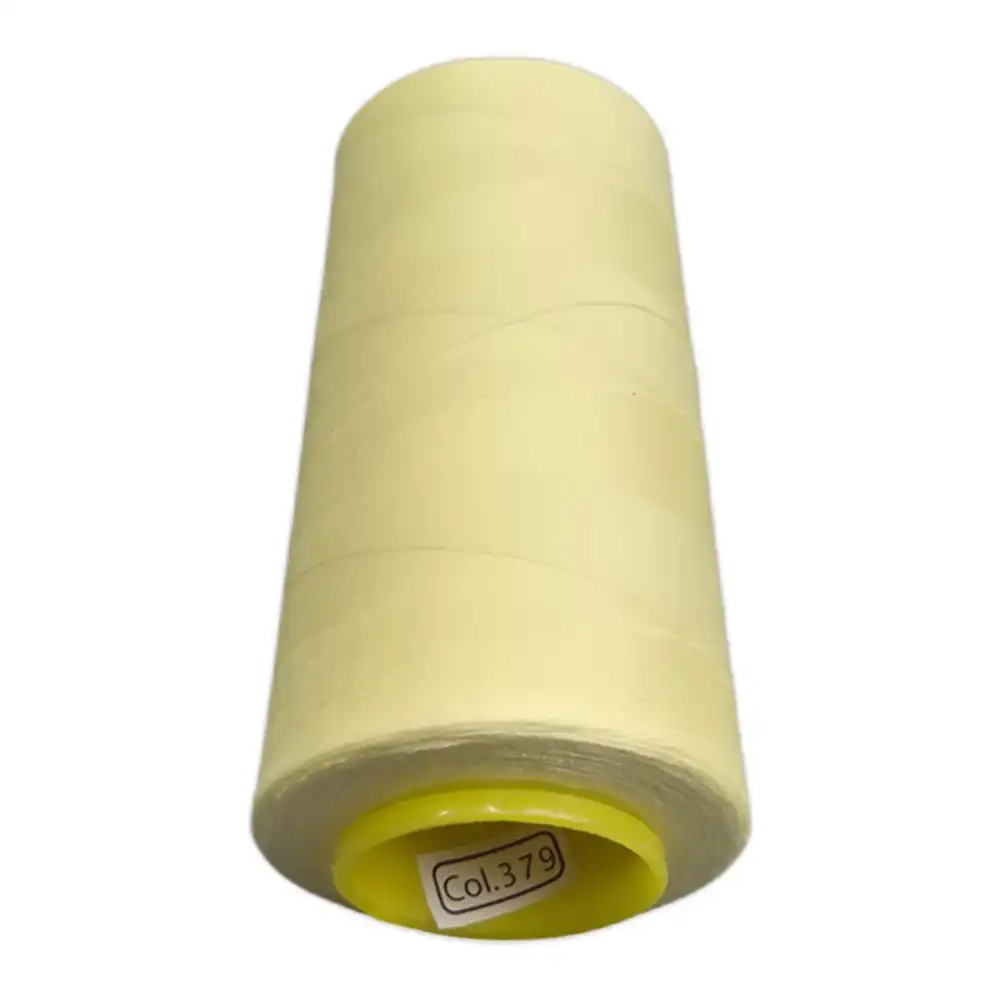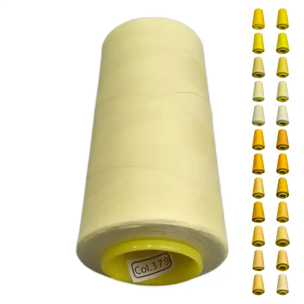 Нитки KIWI в цвете 379 имеют мягкий, теплый оттенок, который можно охарактеризовать как светло-желтый, пастельный желтый или лимонный. Эти полиэстеровые нити отличаются высокой прочностью и малой растяжимостью, что делает их подходящими как для бытовых, так и для профессиональных швейных машин. Подходящие ориентиры по Pantone: PANTONE 600 и PANTONE 601.