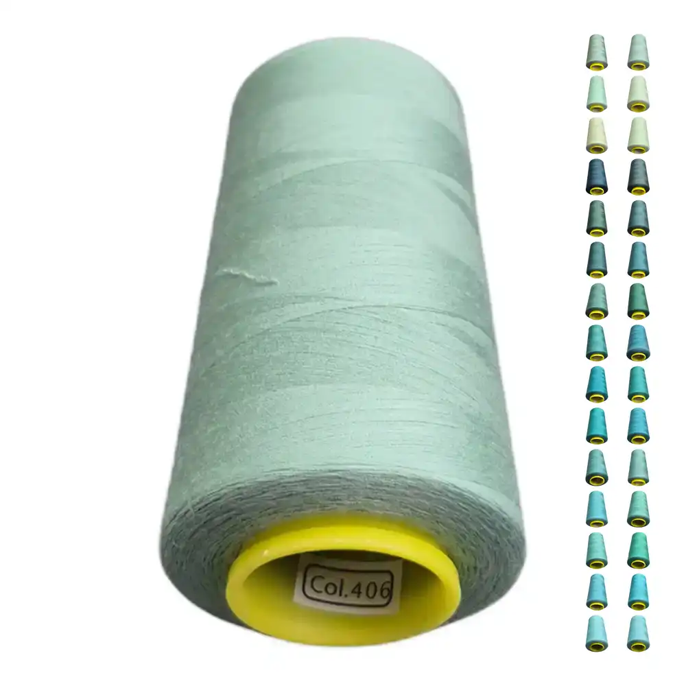 Цвет ниток KIWI в оттенке 406 можно охарактеризовать как мятный, бирюзовый и светло-зеленый. Этот оттенок близок к Pantone 324 C и Pantone 564 C, что подчеркивает его свежесть и легкость. Нитки изготовлены из полиэстера, обладают высокой прочностью и малой растяжимостью, что делает их подходящими для использования как в бытовых, так и в профессиональных швейных машинах.