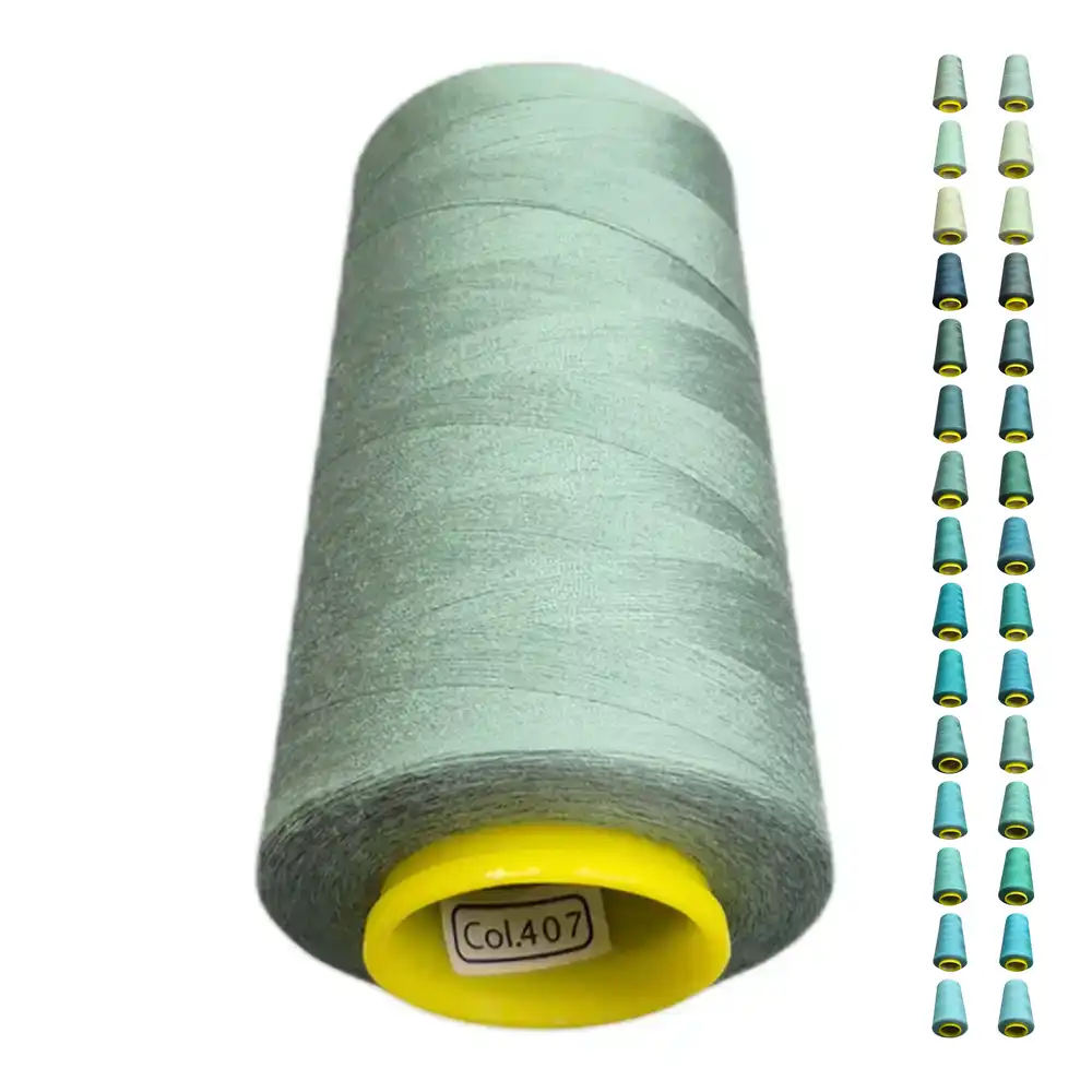 Нитки KIWI в цвете 407 имеют свежий мятный оттенок, который можно описать как бирюзовый и светло-зеленый. Этот цвет близок к Pantone 15-5519 и 14-4810. Изготавливаемые из полиэстера, нитки отличаются высокой прочностью и малой растяжимостью, что делает их подходящими для использования как в бытовых, так и в профессиональных швейных машинах.