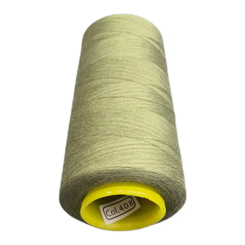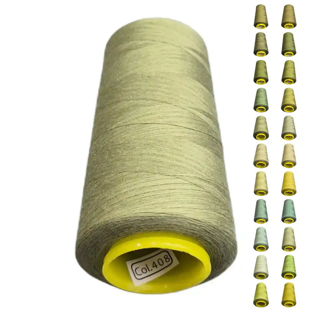 Нитки KIWI цвета 408 имеют оливковый оттенок, который можно описать как зеленовато-серый и светло-оливковый. Близкими ориентировочными Pantone являются PANTONE 5777 C и PANTONE 7496 C. Изготовленные из полиэстера, они обладают высокой прочностью и малой растяжимостью, что делает их подходящими для использования в бытовых и профессиональных швейных машинах.
