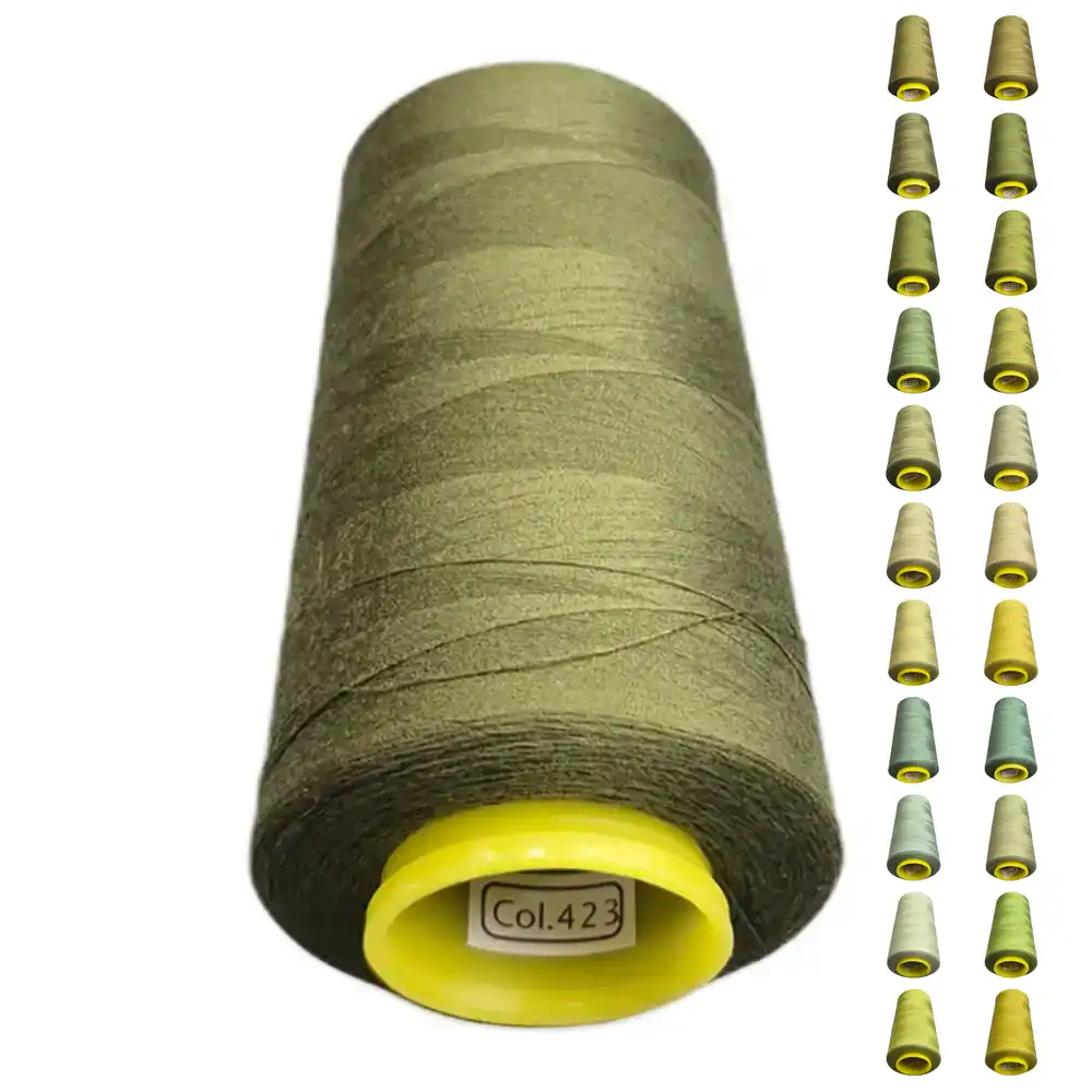 Нитки KIWI цвета 423 имеют оливковый оттенок с зеленовато-коричневыми и масляными нотами, что делает их универсальными для различных проектов. Этот цвет можно сопоставить с Pantone 18-0627 и Pantone 16-0632. Изготовленные из полиэстера, нитки обладают высокой прочностью и малой растяжимостью, что позволяет использовать их как в бытовых, так и в профессиональных швейных машинах.
