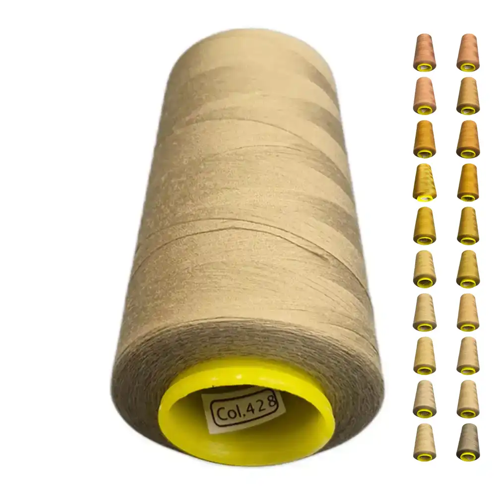 Нитки KIWI цвета 428 имеют приятный бежевый оттенок, который можно описать как светло-коричневый, песочный или кремовый. Они изготовлены из полиэстера, что обеспечивает высокую прочность и малую растяжимость, а также делают их пригодными для использования в бытовых и профессиональных швейных машинах. Ориентировочные оттенки Pantone для этого цвета: Pantone 7500 и Pantone 7501.