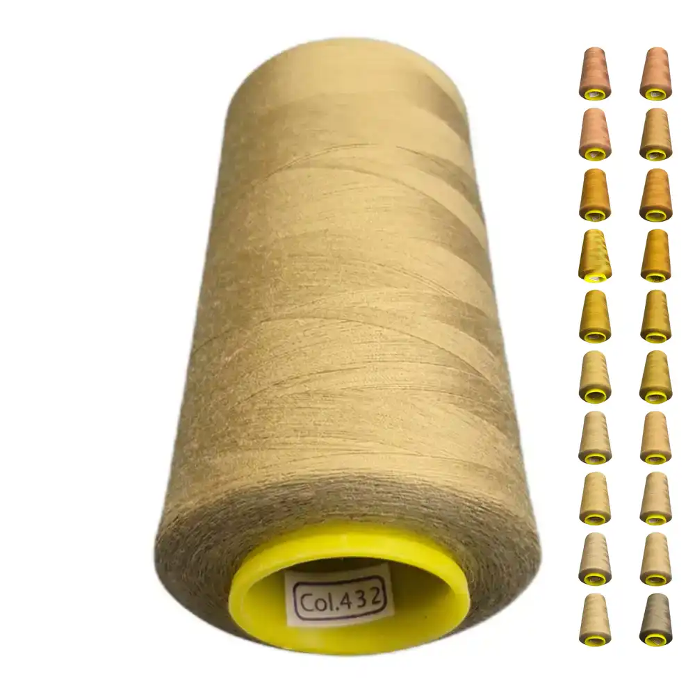 Нитки KIWI в цвете 432 имеют приятный песочный оттенок с легким золотистым налетом, что делает их универсальными для различных проектов. Цвет можно сопоставить с Pantone 750C и Pantone 7401C, что подчеркивает его теплоту и естественность. Изготовленные из полиэстера, эти нити обладают высокой прочностью, малой растяжимостью и подходят как для бытовых, так и для профессиональных швейных машин.