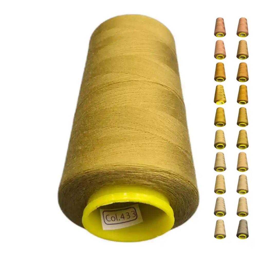 Нитки KIWI цвета 433 имеют теплый песочный оттенок с легким золотистым налетом, который можно охарактеризовать как бежевый и светло-коричневый. Они выполнены из полиэстера, что обеспечивает высокую прочность и малую растяжимость. Эти нити прекрасно подходят для использования как в бытовых, так и в профессиональных швейных машинах.