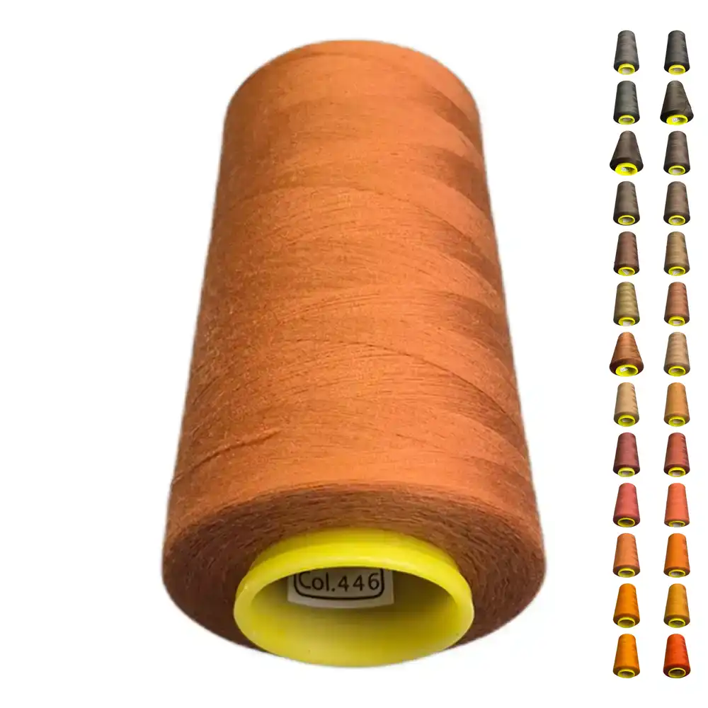 Цвет ниток KIWI 446 представляет собой теплый коралловый оттенок, который можно описать как ржавый и оранжево-коричневый. Этот тон близок к Pantone 7594 C и Pantone 174 C. Нитки изготовлены из полиэстера, обладают высокой прочностью и малой растяжимостью, что делает их подходящими для использования как в бытовых, так и в профессиональных швейных машинах.