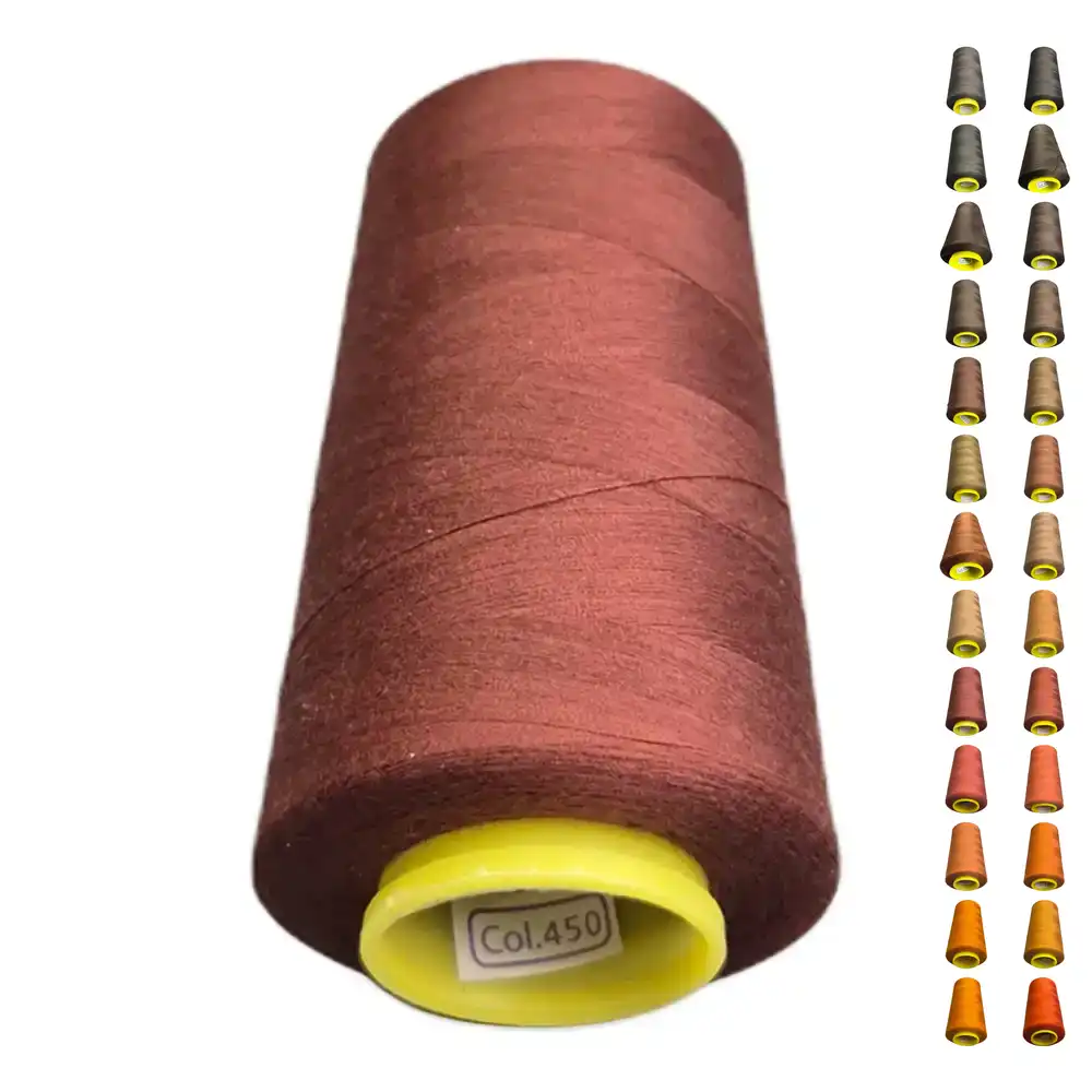 Нитки KIWI в цвете 450 имеют насыщенный каштановый оттенок, который можно описать как коричневый с ржавыми и темно-коричневыми нотами. Этот цвет близок к Pantone 7613 C и Pantone 7504 C. Изготовленные из полиэстера, они обладают высокой прочностью и низкой растяжимостью, что делает их подходящими для использования в бытовых и профессиональных швейных машинах.