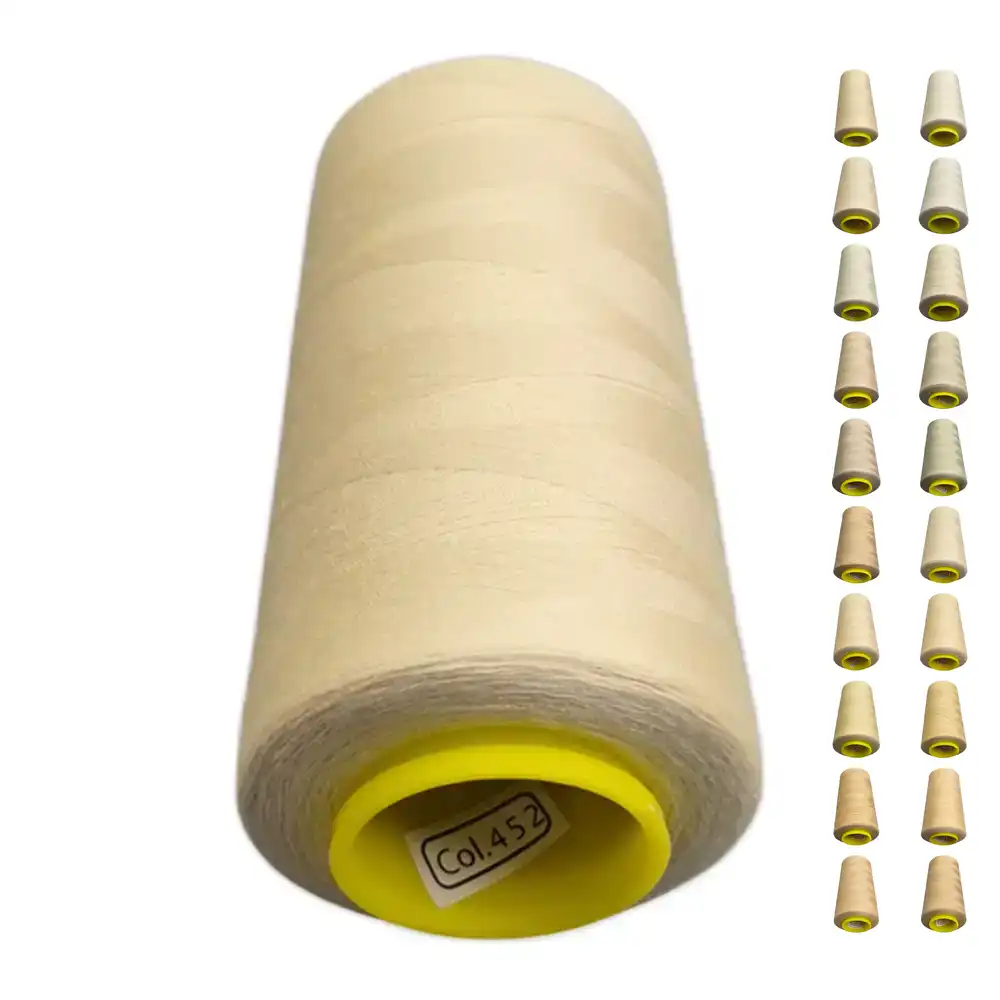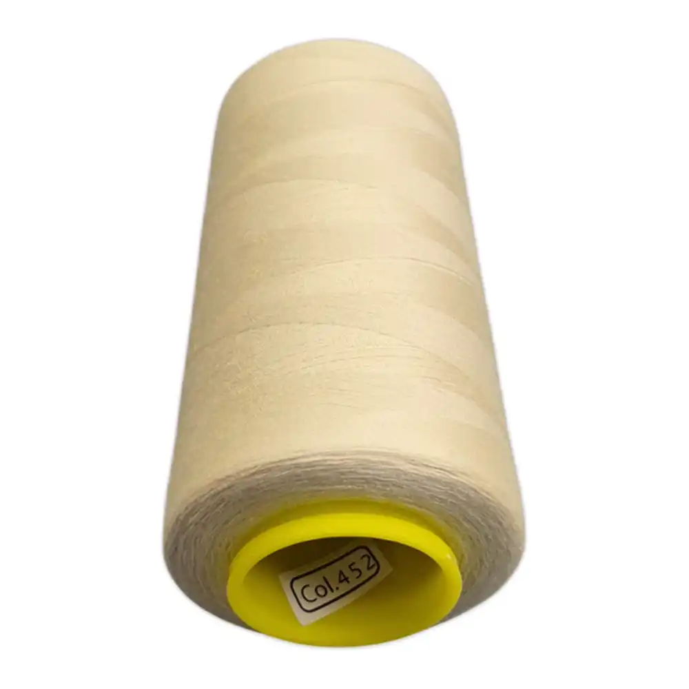 Нитки KIWI в цвете 452 представляют собой светло-бежевый оттенок, который можно описать как песочный и кремовый. Они ориентированы на Pantone 750C и Pantone 7401C. Изготовленные из полиэстера, эти нити обладают высокой прочностью и малой растяжимостью, что делает их идеальными для использования в бытовых и профессиональных машинах.