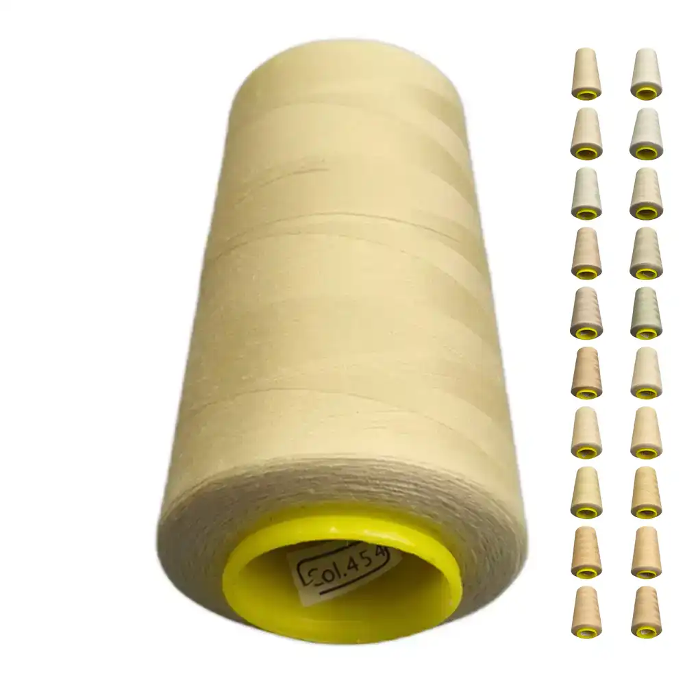 Нитки KIWI цвета 454 обладают светло-бежевым оттенком, который можно охарактеризовать как песочный или кремовый. Эти нити изготовлены из полиэстера, что обеспечивает им высокую прочность и малую растяжимость, что делает их подходящими для использования как в бытовых, так и в профессиональных швейных машинах. Ориентировочные Pantone для этого цвета — Pantone 750C и Pantone 7401C.