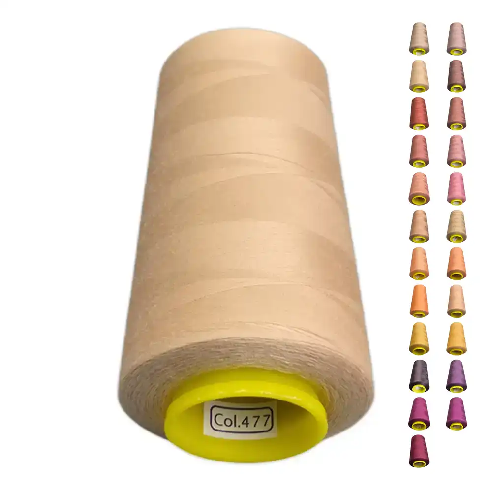Нитки KIWI в цвете 477 имеют светло-коричневый оттенок, который можно описать как бежевый и песочный. Этот цвет близок к Pantone 750C и Pantone 726. Изготовленные из полиэстера, нитки обладают высокой прочностью и малой растяжимостью, что делает их подходящими для использования как в бытовых, так и в профессиональных швейных машинах.