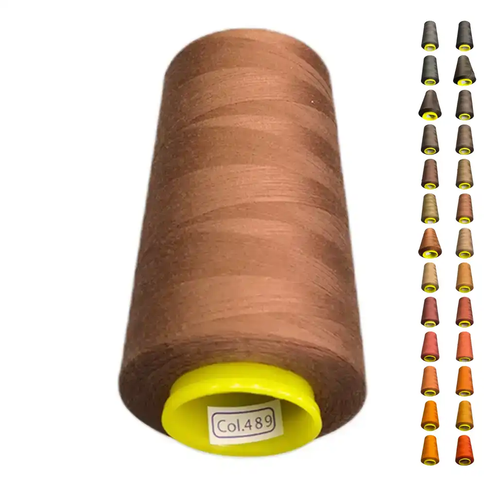 Нитки KIWI цвета 489 имеют насыщенный каштановый оттенок, который можно охарактеризовать как коричневый или терракотовый. Этот цвет близок к Pantone 7594 C и Pantone 7579 C. Изготавливаемые из полиэстера, нитки обладают высокой прочностью и малой растяжимостью, что делает их подходящими для использования как в бытовых, так и в профессиональных швейных машинах.