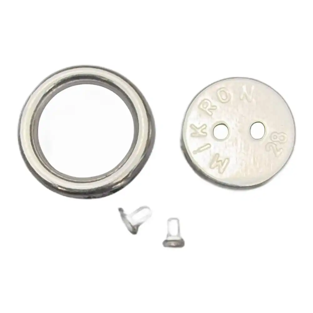 АЛЬТЕРНАТИВНЫЕ НАЗВАНИЯ: Пуговица Сюзанна под обтяжку 18 мм, Пуговица под обтяжку 28L, Пуговица под обтяжку Mikron, Пуговица под обтяжку 100 шт.