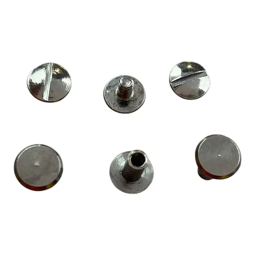АЛЬТЕРНАТИВНЫЕ НАЗВАНИЯ: Винт ременной 6 мм Темный никель, Крепеж для сумок, болты для сумок, Внешний диаметр 9 мм, Металлический винт, Винт длинной ножкой 6 мм, Винт цвета темного никеля