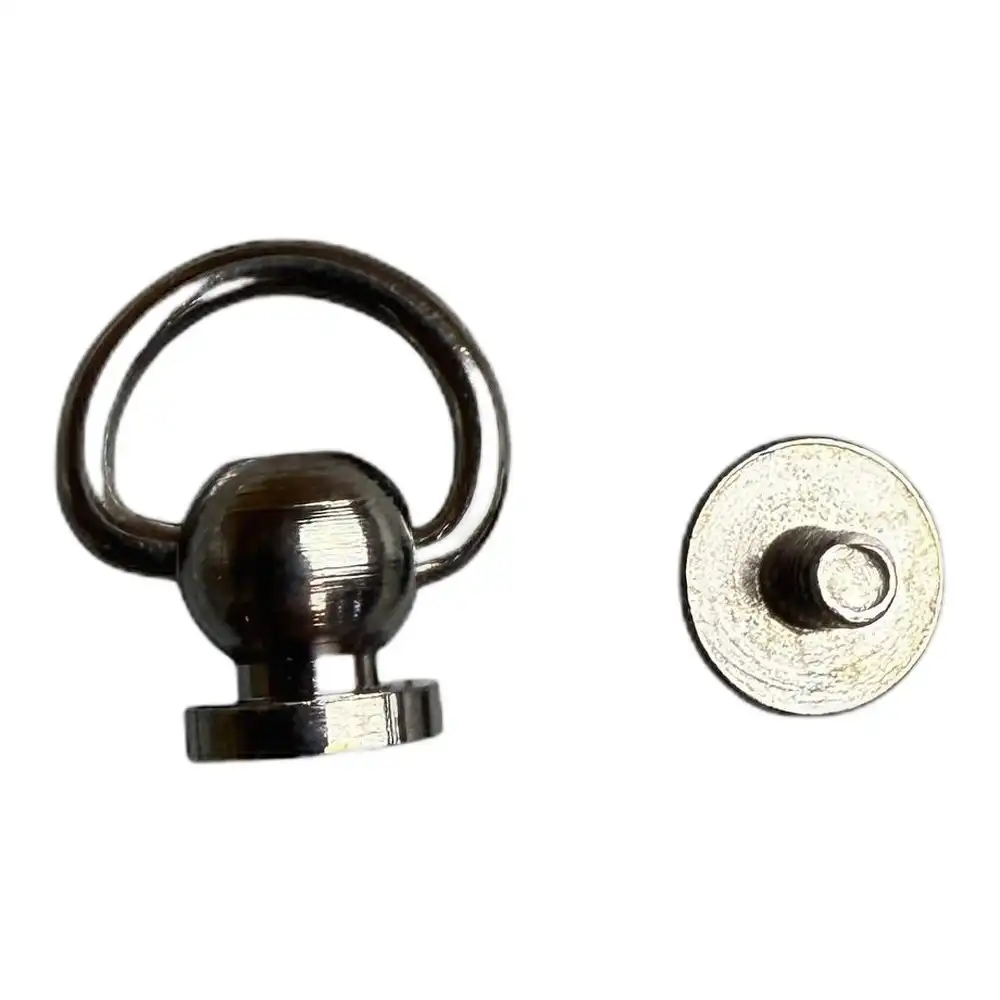 АЛЬТЕРНАТИВНЫЕ НАЗВАНИЯ: Винт с полукольцом 11 мм Темный никель, Крепеж для сумок, Болты для сумок.